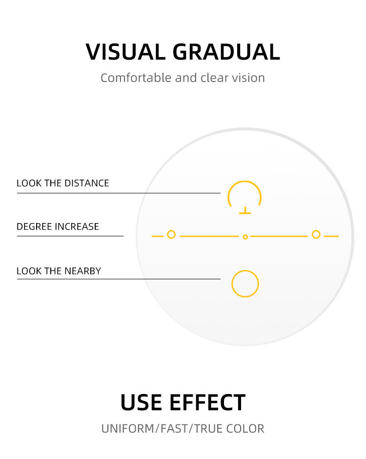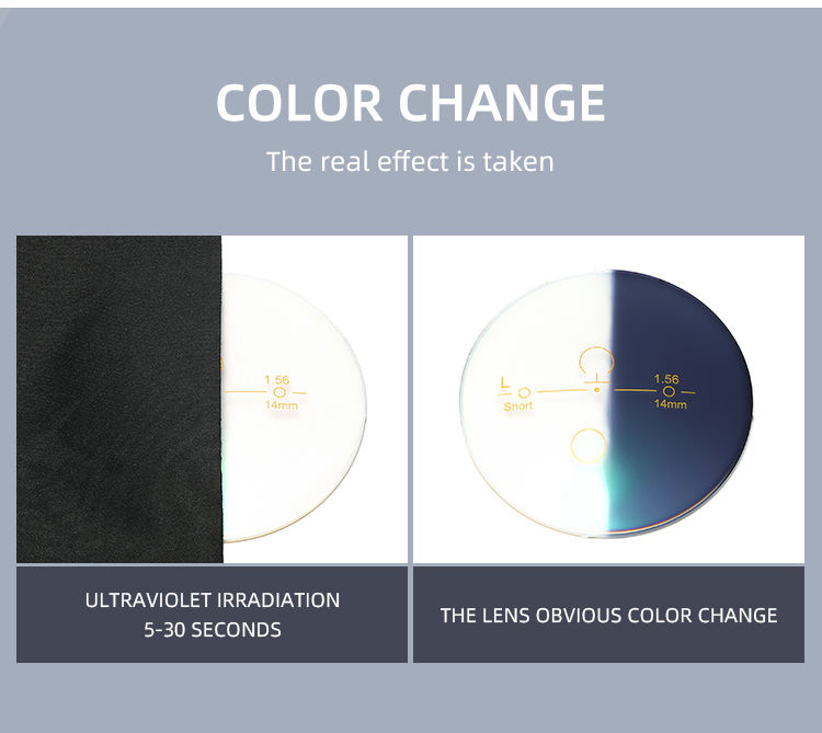 Lentille d'usine 1.56 lentilles optiques gris photo lentilles photochromiques progressives de haute qualité 70/12/14MM