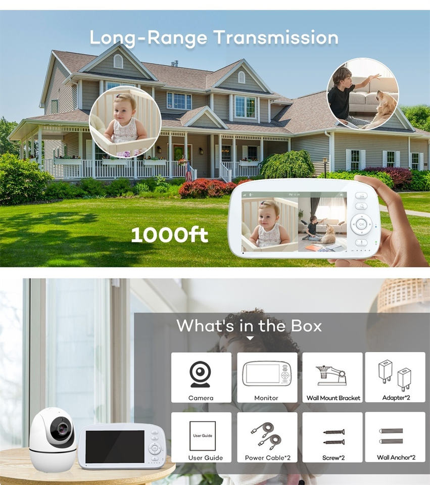 Usine bas prix plus récent 1000ft sans fil bidirectionnel conversation Vision nocturne berceuses pleurer alarme caméra Bebes 5 pouces bébé moniteur