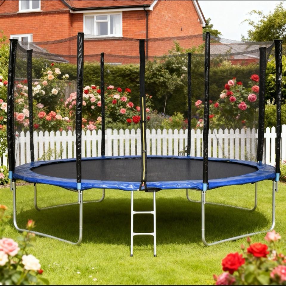 Trampoline rond extérieur grand format, sûr et doux, avec filet de protection/toit, cadre de 12 pieds, prix d'usine bas, vente chaude