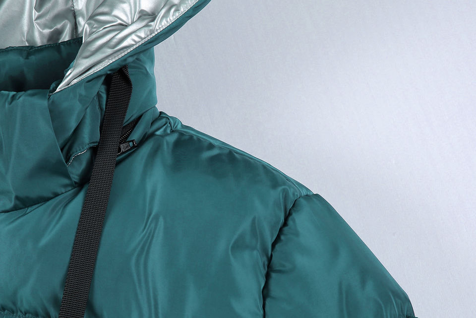Veste matelassée imperméable unisexe à manches longues fabriquée en usine, modèle 2025, avec fermeture éclair, capuche à bulles, devant haut