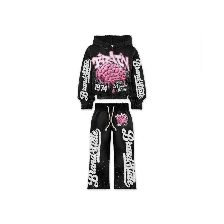 Fabriqué en usine meilleure vente chaud hiver sérigraphie fermeture éclair goutte épaule sweats à capuche Flare pantalon unisexe rue mode survêtements