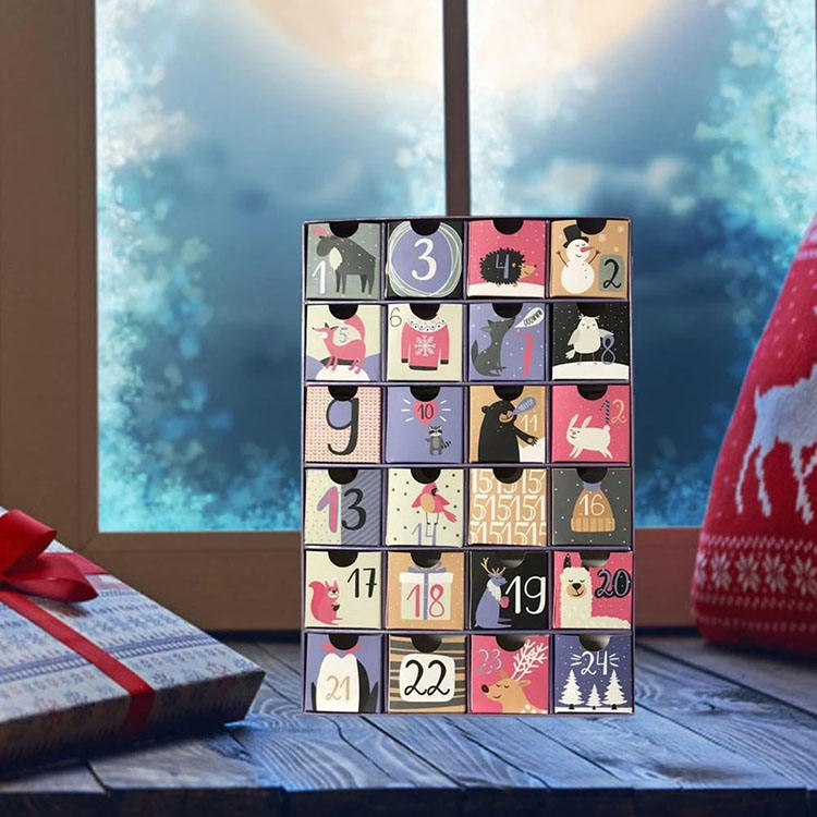 Emballage cadeau de noël fabriqué en usine calendrier de l'avent 2023 boîte en carton