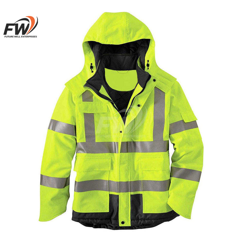 Vestes de sécurité à haute visibilité pour l'hiver, fabriquées en usine, avec logo sur le devant, imperméables, respirantes, vêtements de travail pour la construction