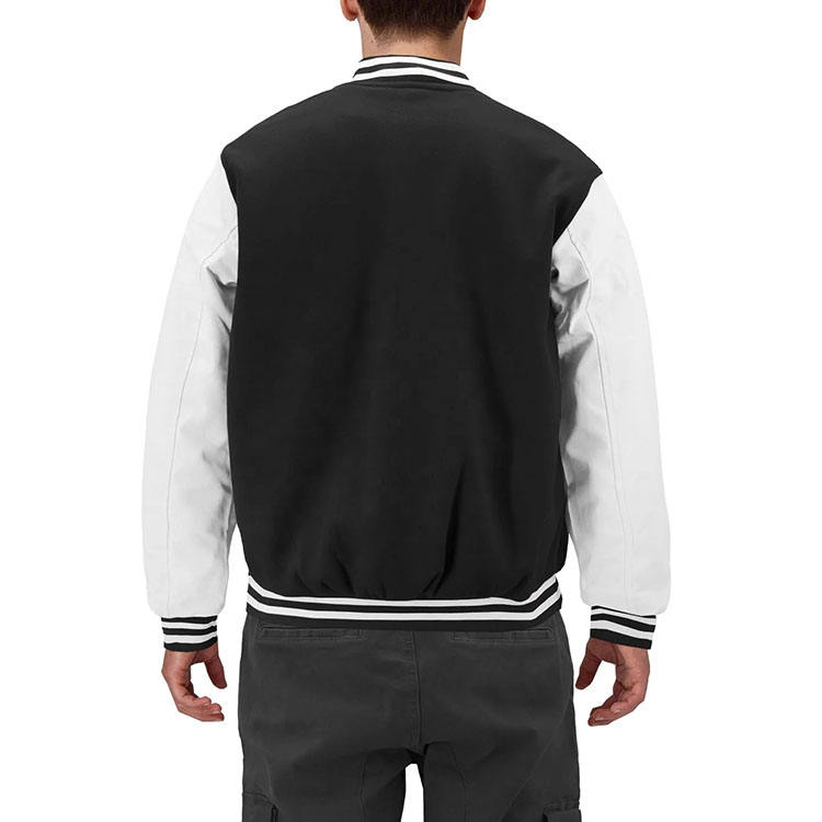 Blousons universitaires pour hommes fabriqués en usine avec col montant, logo frontal, étiquettes personnalisées, 100 % coton respirant, vente chaude, prix compétitif