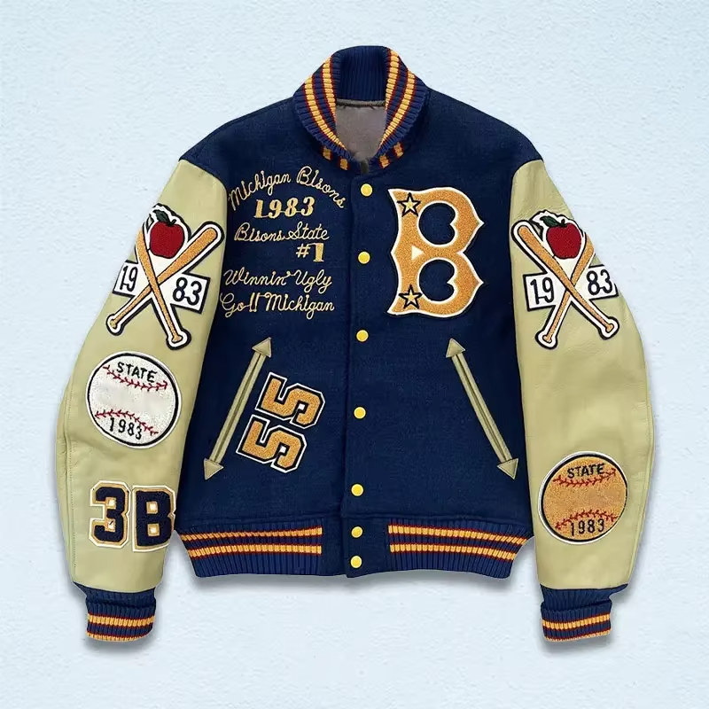 Veste universitaire fabriquée en usine pour hommes Tendance High Street Winter Letterman Designs Vestes respirantes de haute qualité pour hommes