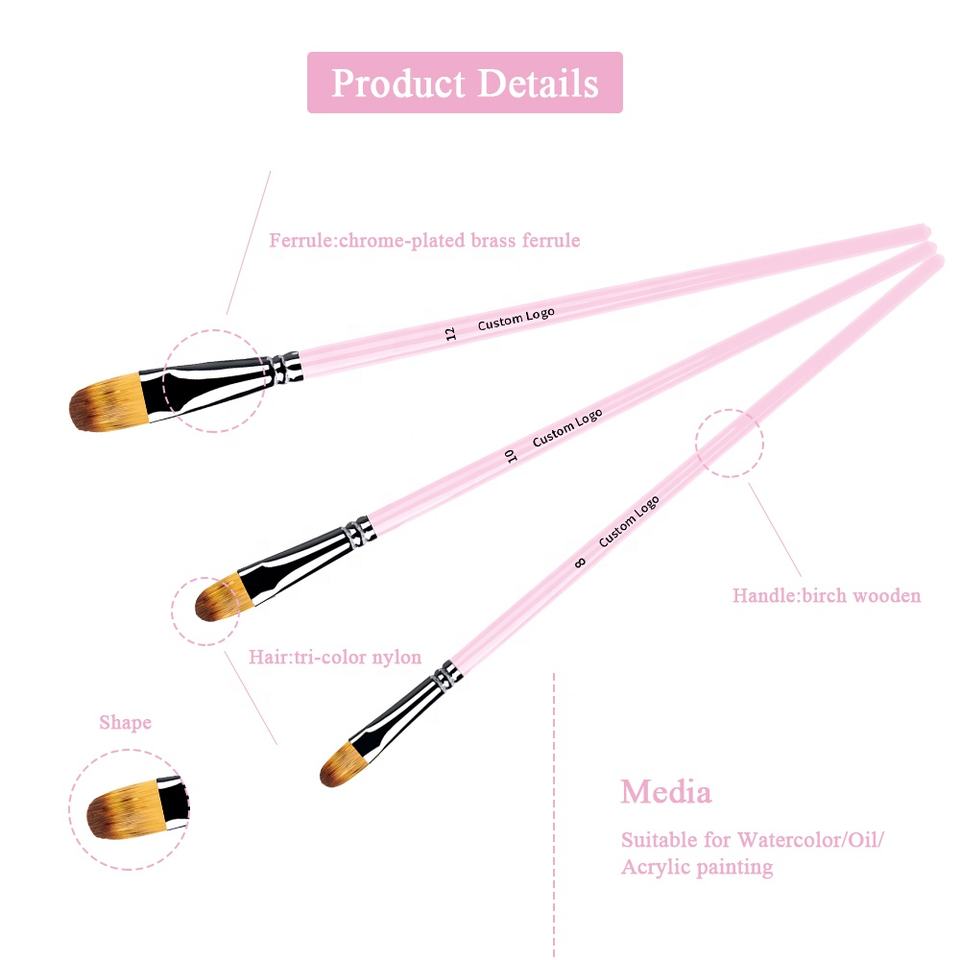 Pinceau de peinture en Nylon, 3 couleurs rose, à manche Long, pour peinture, gâteau, nouveau modèle, fabrication d'usine, échantillon gratuit