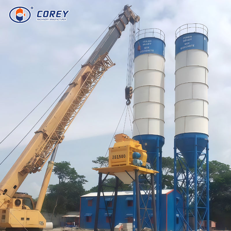 Centrale à béton stationnaire Corey HZS90 entièrement automatique, contrôlée par PLC, avec réservoir de stockage de ciment, 90 mètres cubes/heure