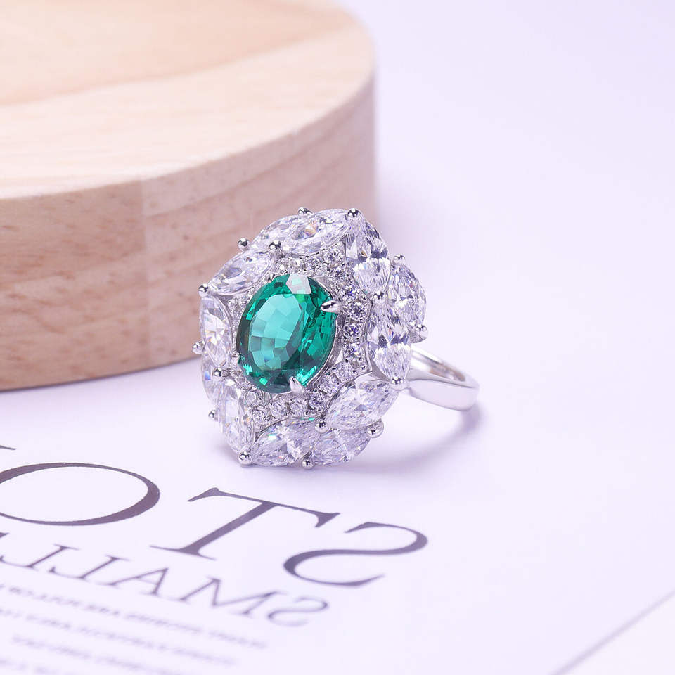 Bague émeraude personnalisable 1 carat, style classique, ovale 5x7mm, prix fabricant de laboratoire