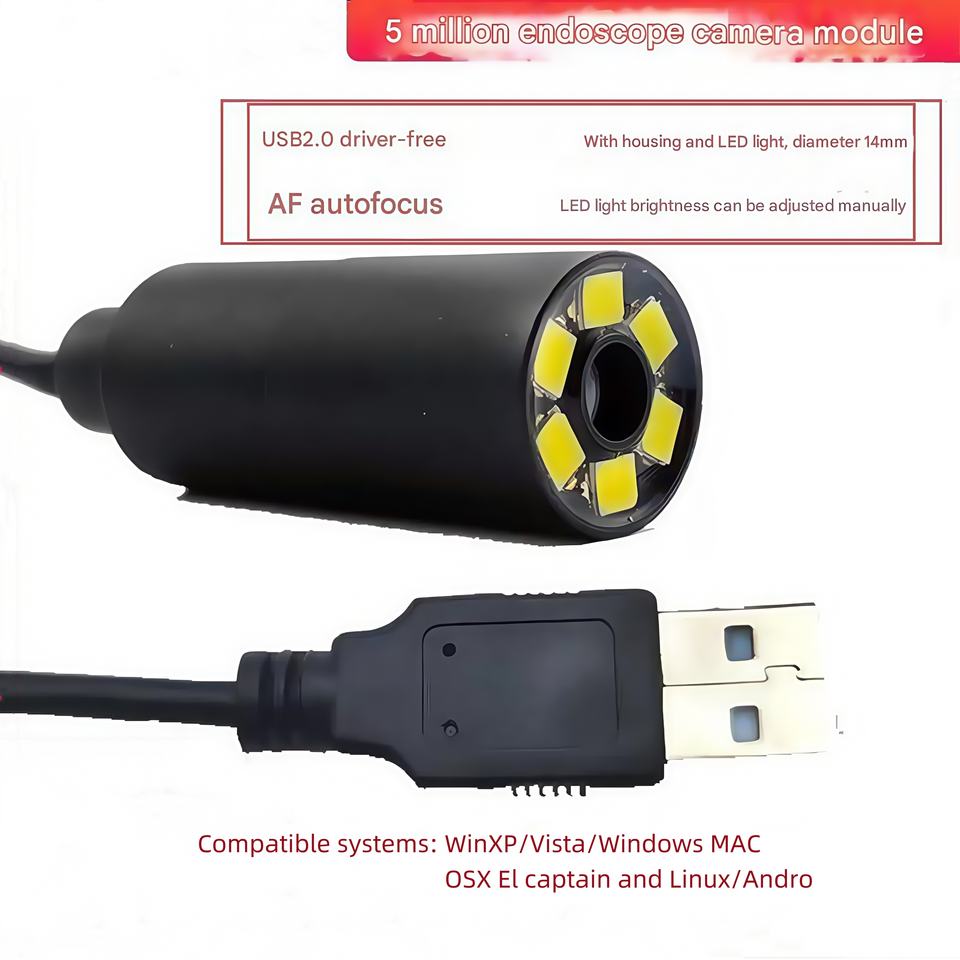 Fabricant d'usine USB sans pilote 5MP 8MP 12MP sonde d'endoscope LED intégrée AF caméra de pipeline industrielle Module de caméra HD