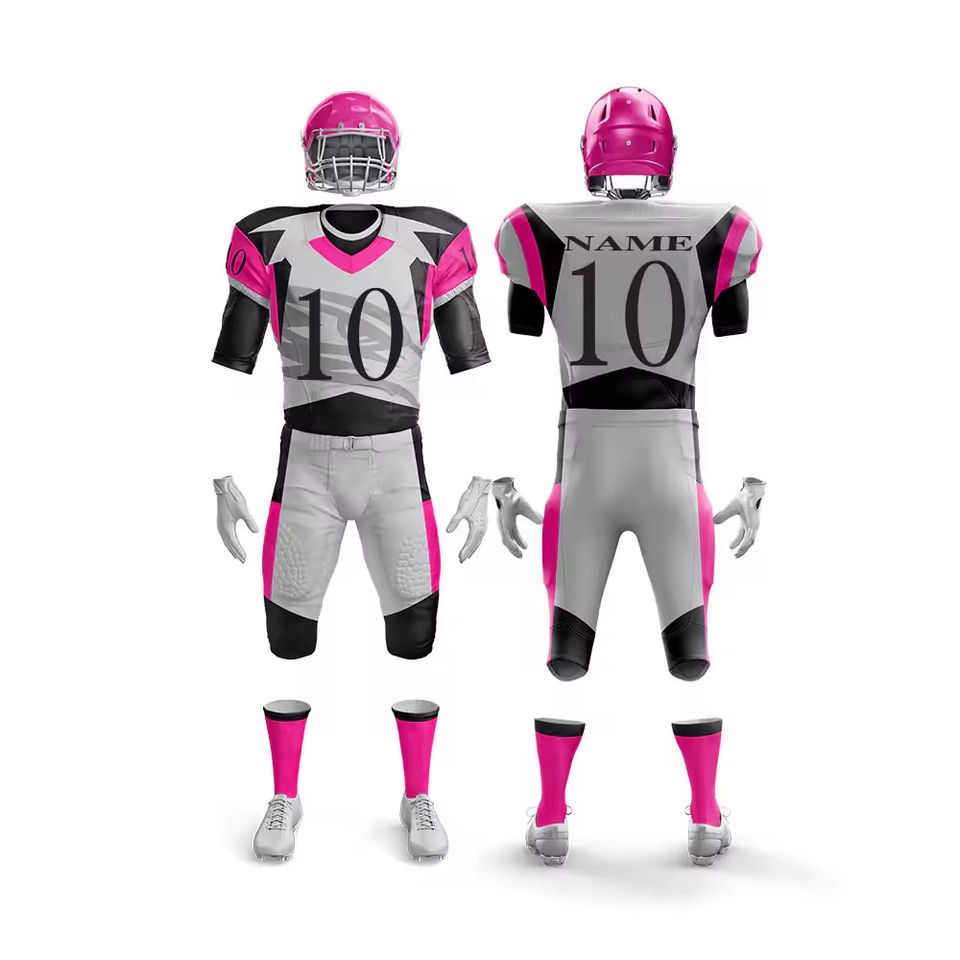 Uniforme de football américain sur mesure, dernière conception, respirant, imprimé, grande taille, été, manches longues, fabriqué par l'usine