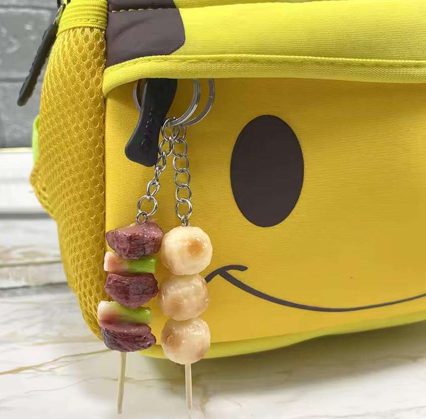 Mini-Accessoires de Simulation de Barbecue Japonais : Brochettes de Viande, Pendentif Œuf, Porte-clés pour Sac d'École et Voiture