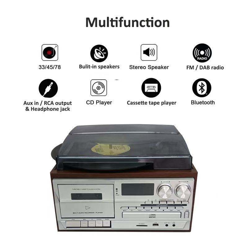 Système audio domestique multifonctionnel tout-en-un : tourne-disque vinyle, lecteur CD, lecteur cassette, radio AM/FM, USB