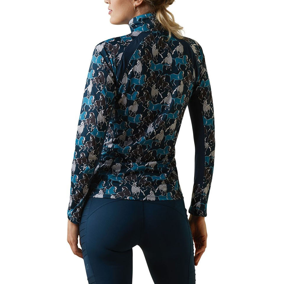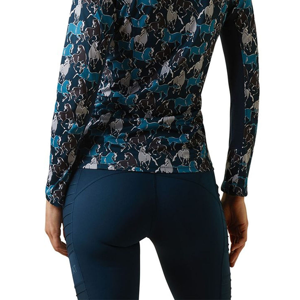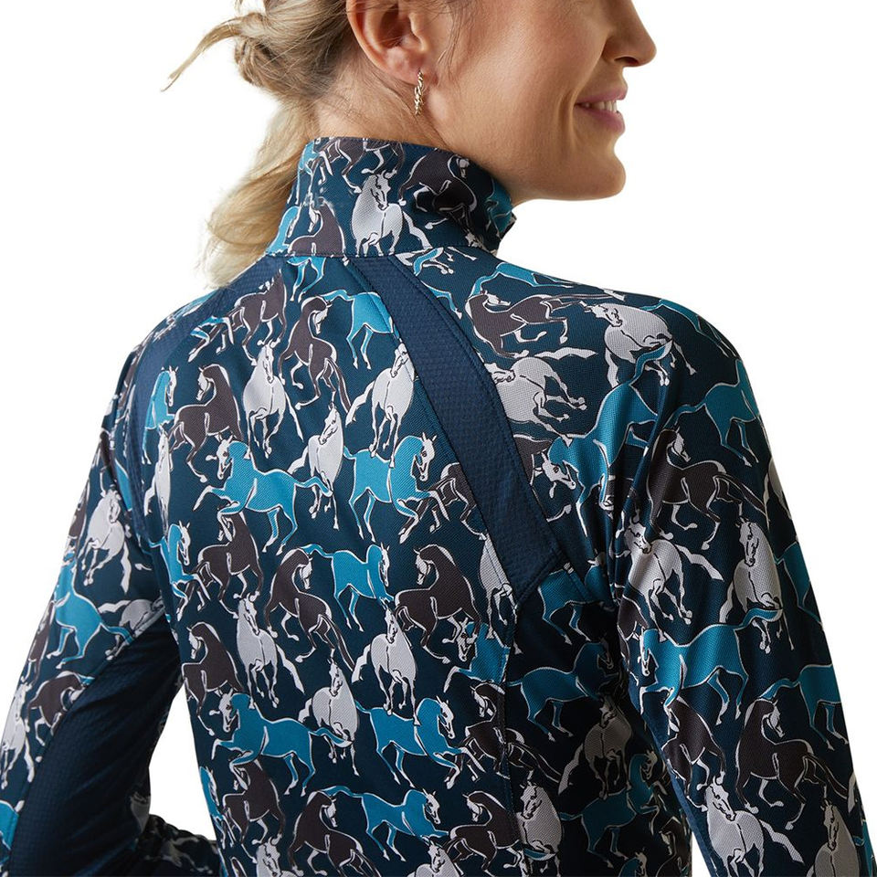 Chemises d'équitation pour femmes, neuves, bleues, imprimées, respirantes, de luxe, style western, anti-UV, avec fermeture éclair.