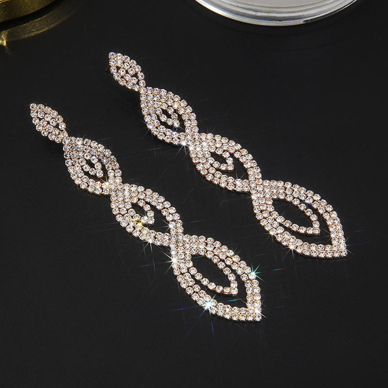 Nouvelles Boucles d'oreilles Chandelier en Strass Style Européen et Américain pour Femme, Chaîne à Griffes Exagérée, Longues, Effet Œil de Cheval, pour Scène et Tenues de Caractère