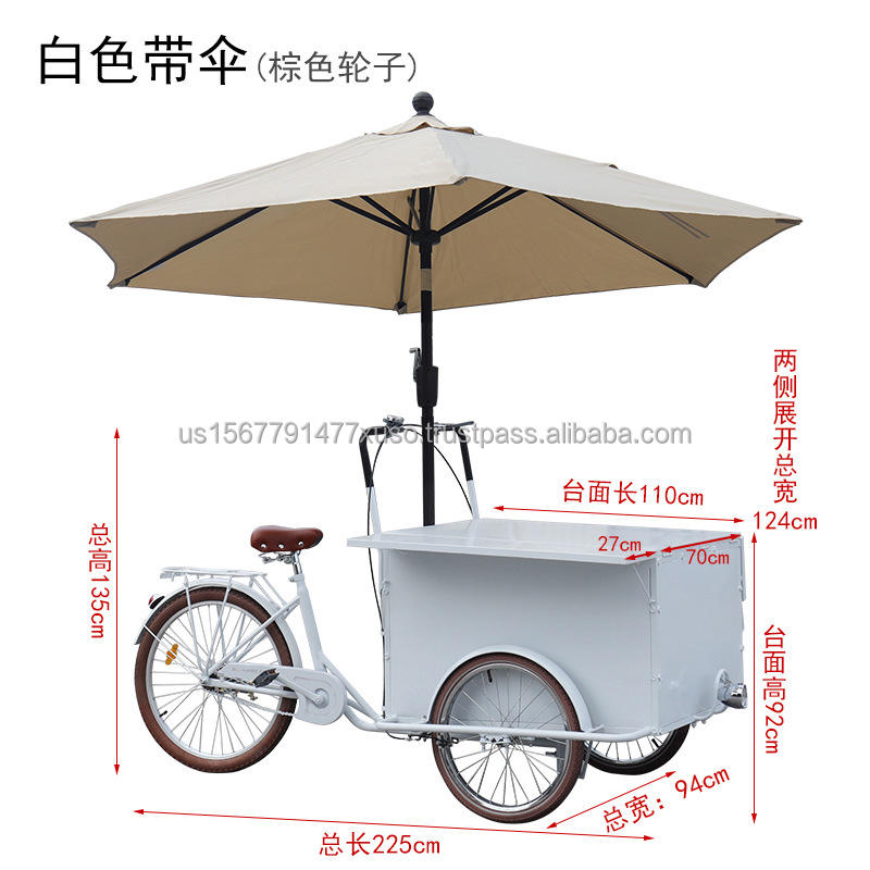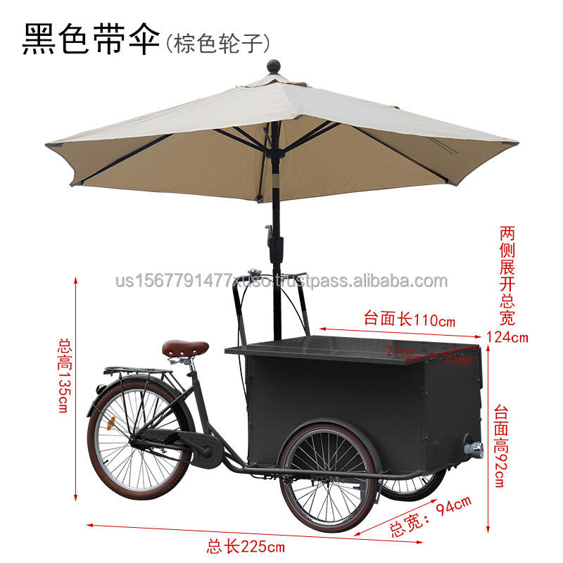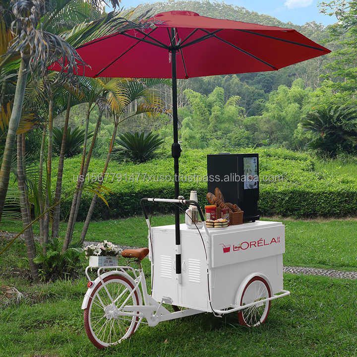 Factory New Outdoor Mobile Fashion Electric Coffee Bike Ice Cream Hot Dog Cart Snack Food Cart