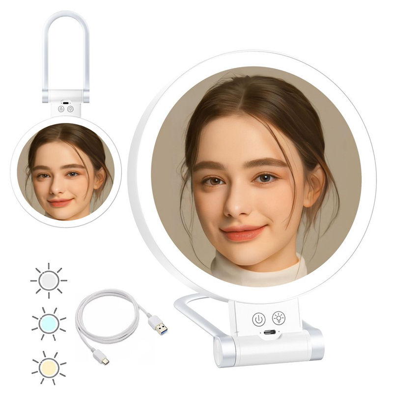Usine Nouveau Portable Double Face Réglable 5X Miroir De Maquillage Éclairé Miroir Cosmétique De Table avec Étiquetage pour La Maison Et Le Voyage