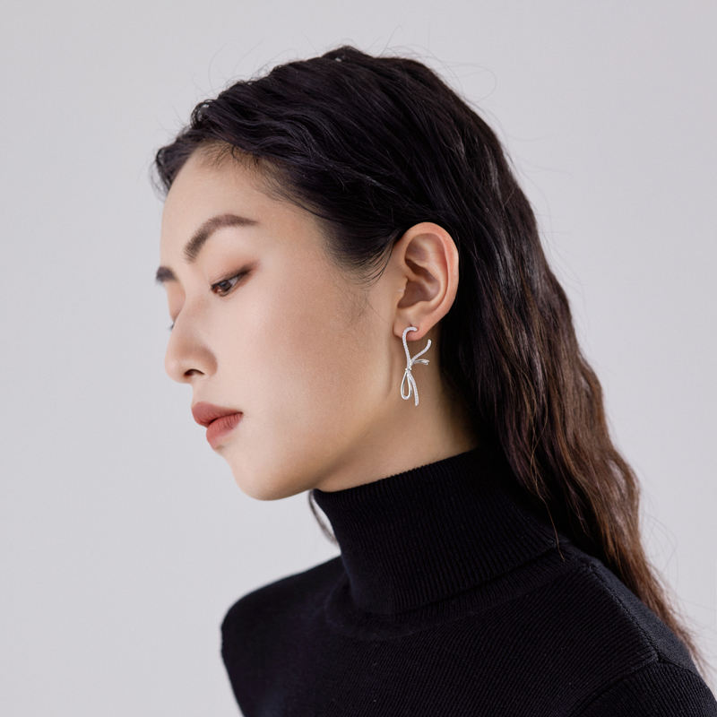 Boucle d'oreille en zircon cubique 3A en argent sterling 925, boucle d'oreille de créateur coréen en or Xlove