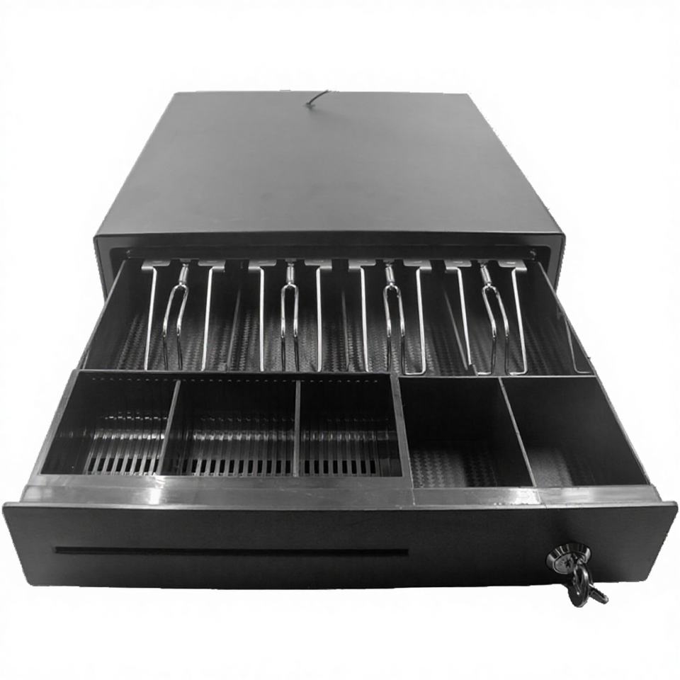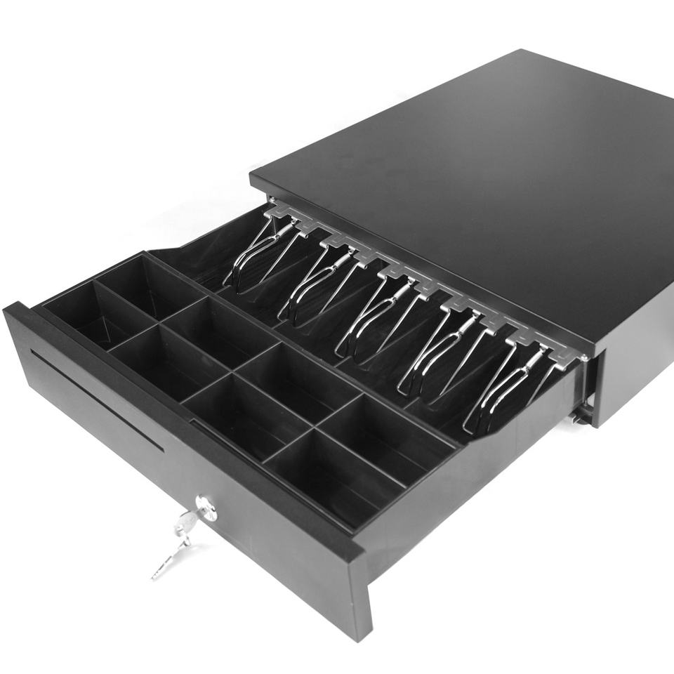Tiroir-caisse POS compact OEM d'usine, 5 billets 6 pièces, 4 compartiments billets 3 compartiments pièces, en plastique antirouille, 335 mm, pour magasin, supermarché, système de caisse enregistreuse