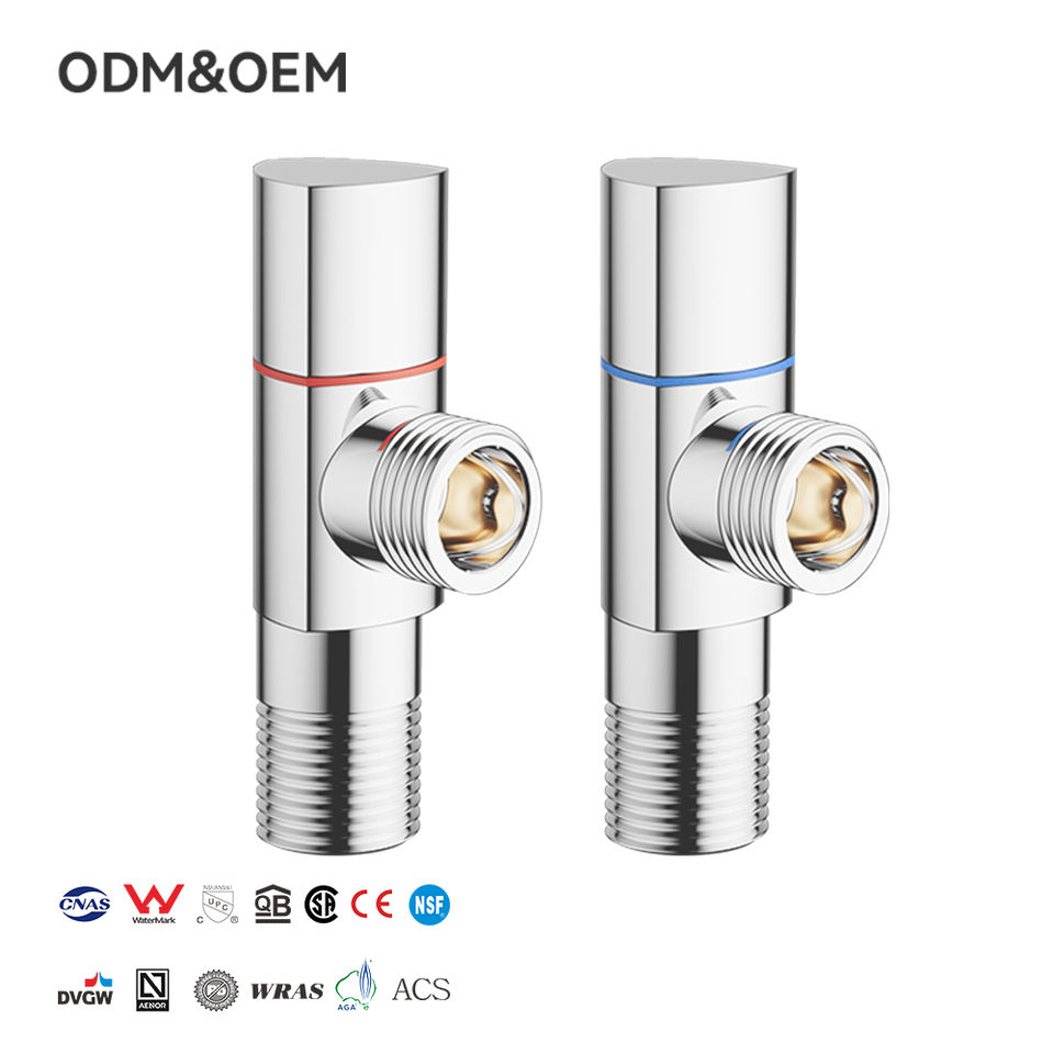 Usine OEM prix commercial 1/2 angle vanne d'arrêt eau multifonction salle de bain 90 degrés laiton finition chromée cartouche en céramique