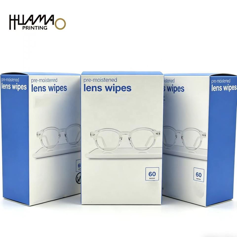 Boîte en papier recyclable personnalisée OEM pour lingettes jetables pour lentilles, boîte d'emballage pour lingettes nettoyantes pour lunettes