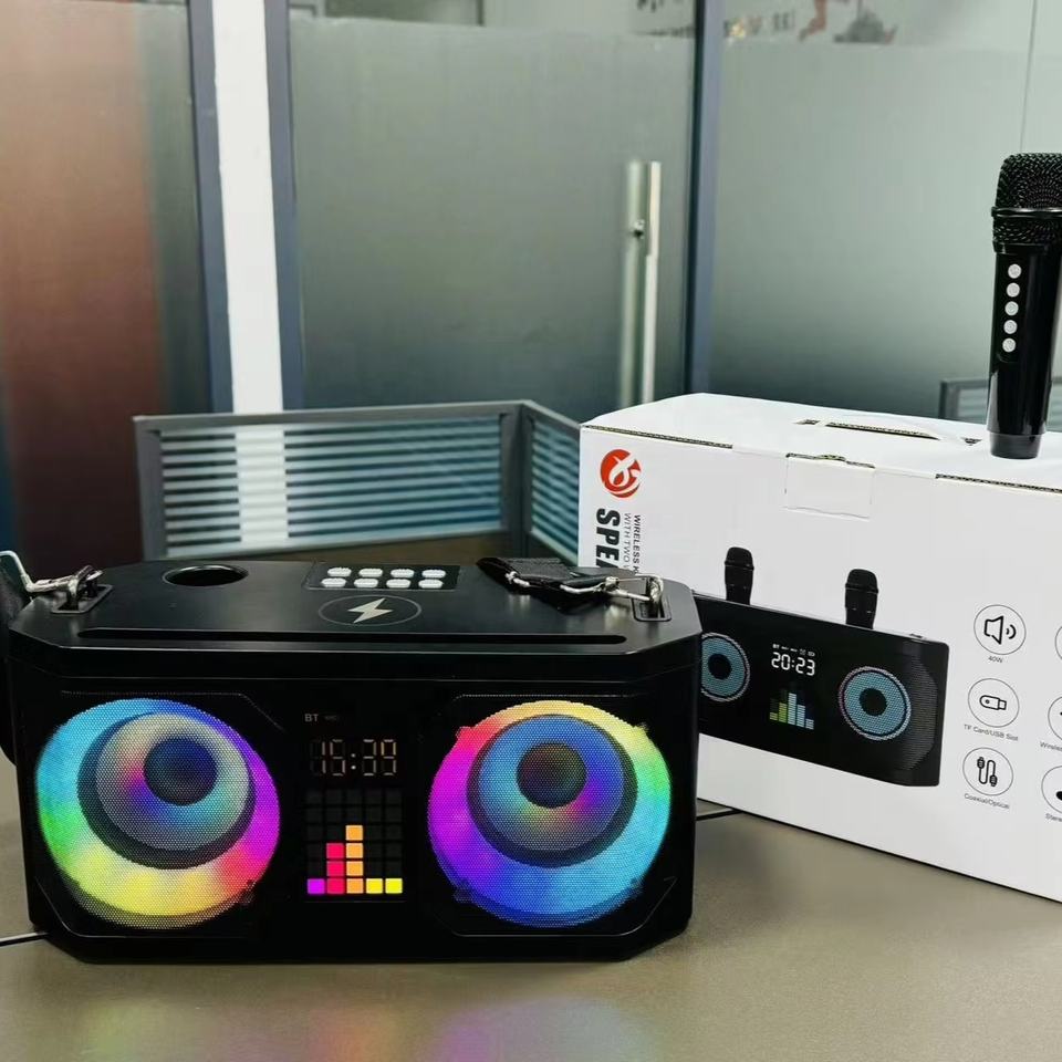 Support de charge rapide OEM d'usine avec réveil, alimenté par USB, haut-parleur portable sans fil 5.3 A920 pour karaoké avec 2 micros