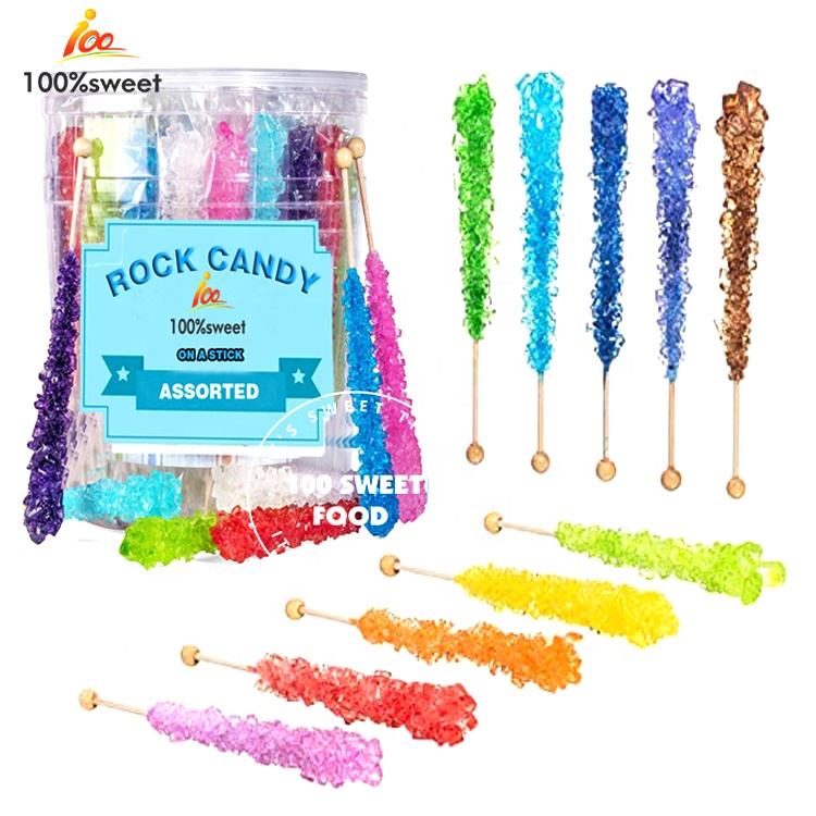 Usine OEM Certificat Halal Haccp Mélange multicolore de saveur de fruit Crystal Rock Candy Stick Sucette