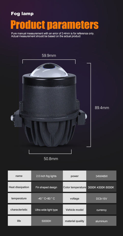 Nom du produit:Projecteur de lampe antibrouillard 2.0 pouces