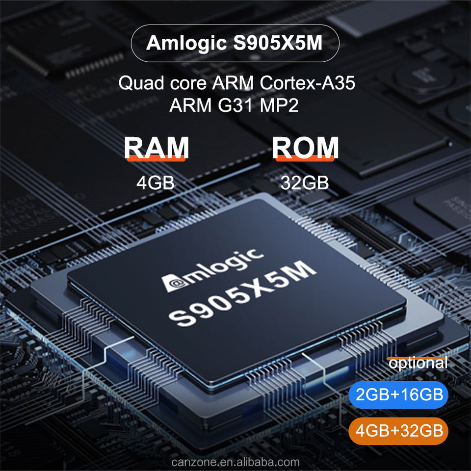 Boîtier TV Android 14 avec prise en charge IPTV, Amlogic S905X5M Quad Core, streaming 4K, 2 Go 16 Go, WiFi 6, commande vocale, lecteur multimédia OEM ODM d'usine