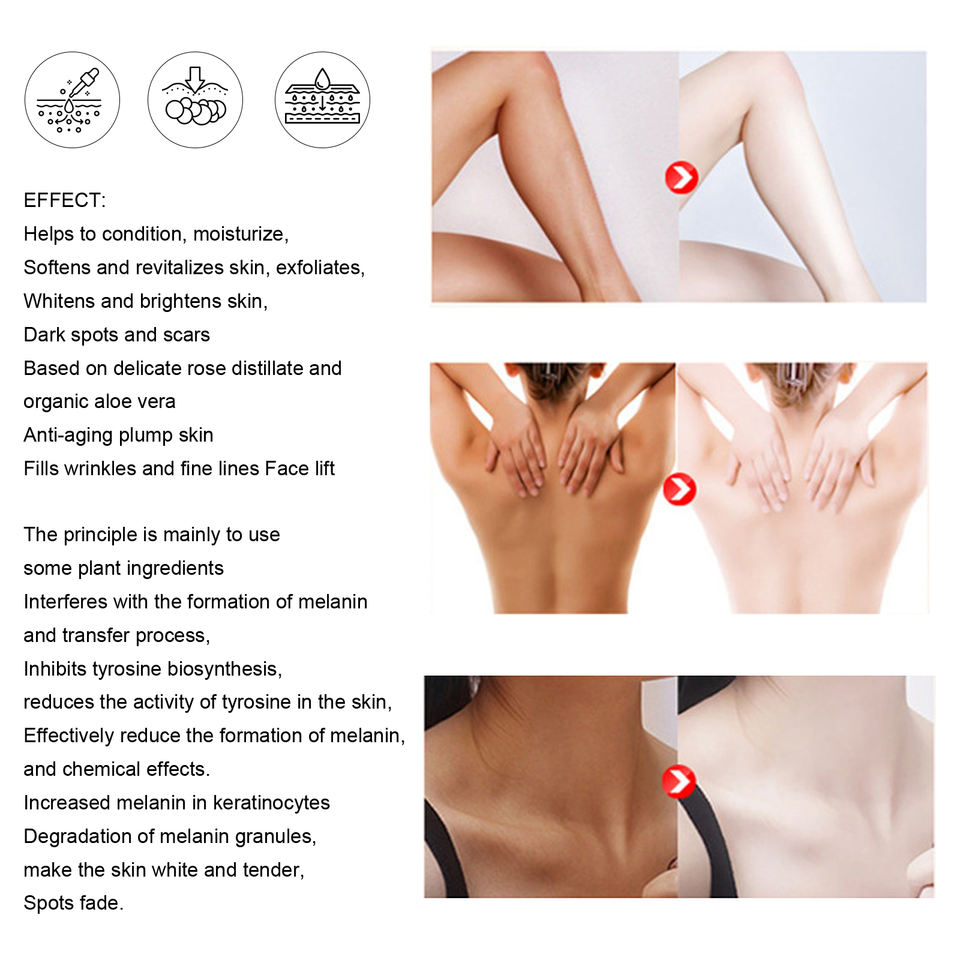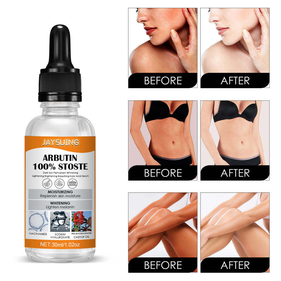 Usine OEM Peau foncée Organique Corps et Visage Éclaircissement Permanent Blanchiment Éclaircissant Blanchiment Hydratant Sérum à l'Arbutine