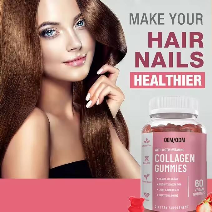 Gummies véganes de biotine et collagène pour la peau, les cheveux et les ongles, marque privée OEM d'usine