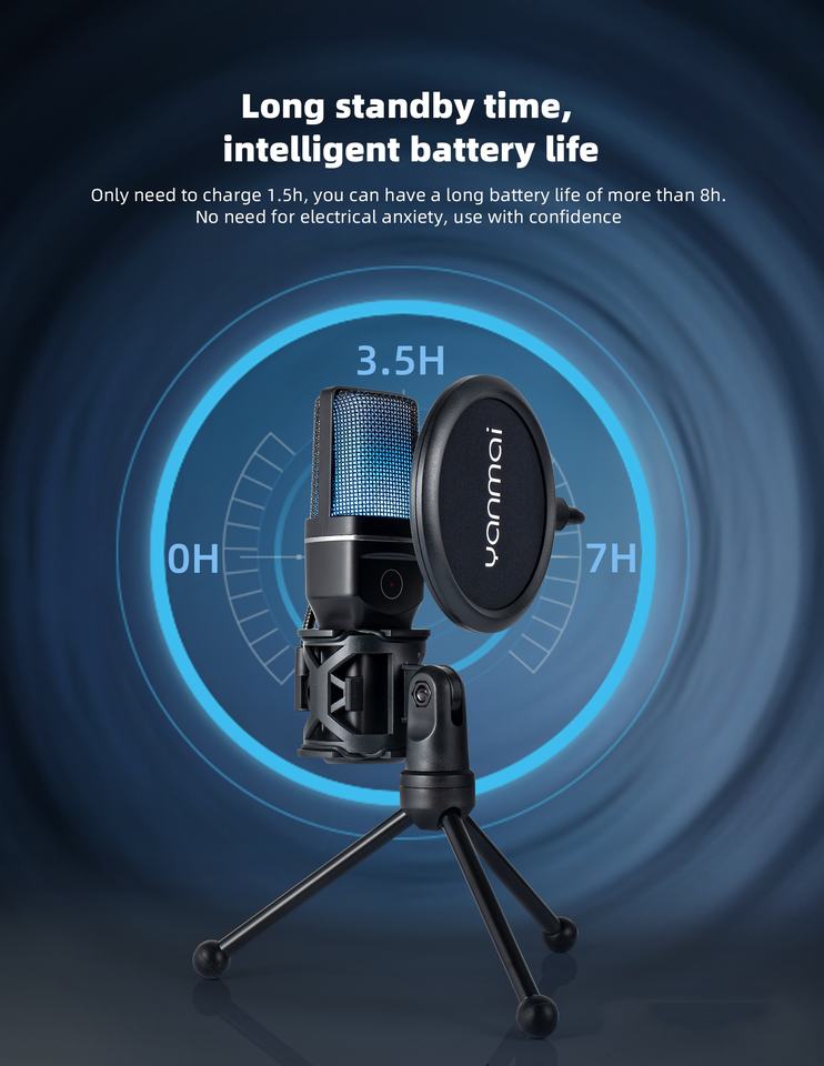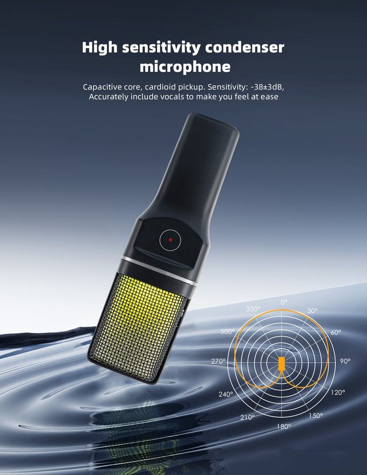 Léger, Microphone à condensateur, Micro USB, Avec éclairage RVB, Portable, Réduction de bruitFonction