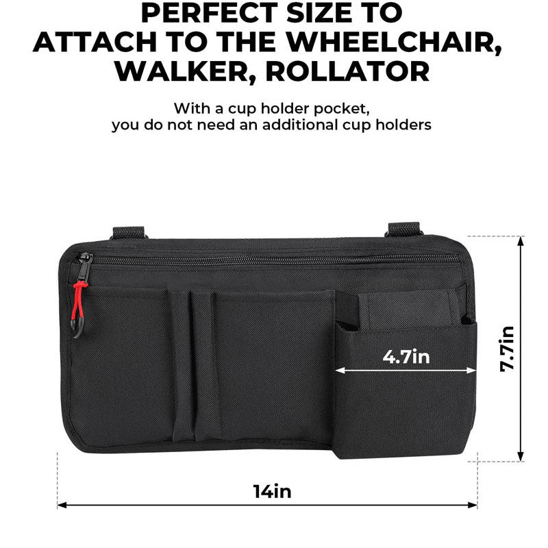 Organisateur de stockage latéral pour fauteuil roulant OEM d'usine pochette d'accoudoir de fauteuil roulant sac latéral de mobilité