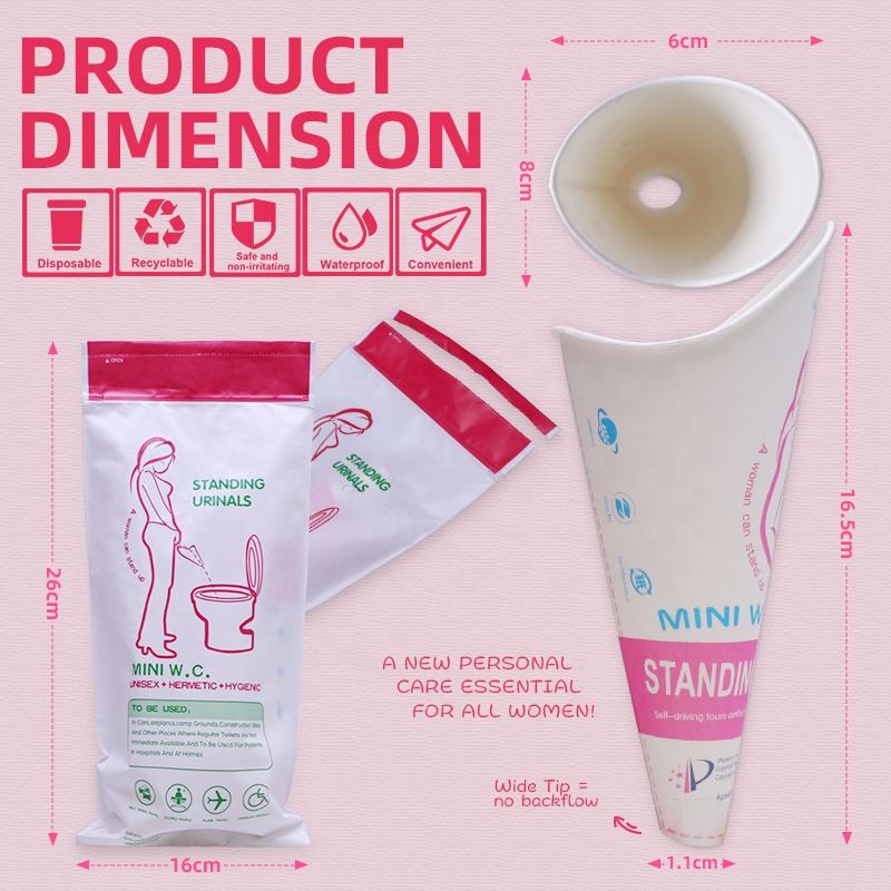 Dispositif urinaire portable jetable en papier pour femme, en forme d'entonnoir, à utiliser debout, écologique, à gravité, pour extérieur, de fabrication industrielle