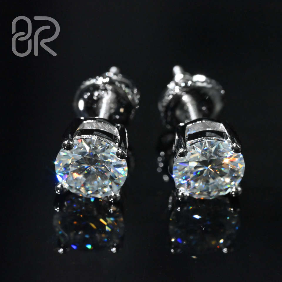 Sortie d'usine 10K 14K 18K Boucles d'oreilles en or Pass Diamond Tester Glacé Round Brilliant Cut Vvs Moissanite Boucles d'oreilles Femmes