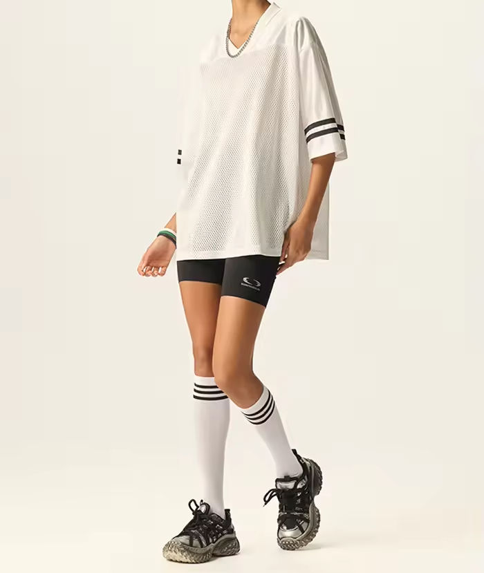 Maillot de football vintage oversize coupe boxy en maille, style streetwear, à manches courtes