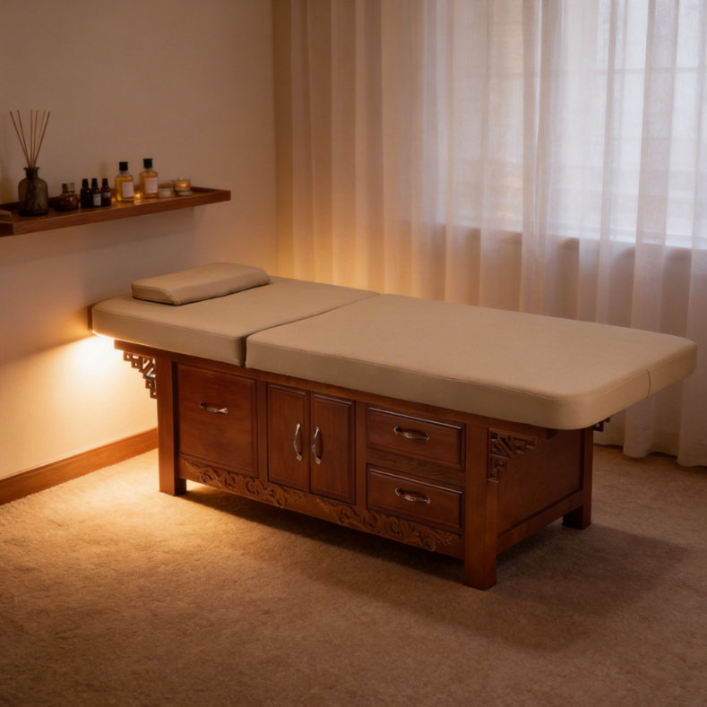 Lit de massage en cuir PU personnalisé pour salon de beauté et SPA, lit de beauté en bois, vente en gros, modèle BX-W005