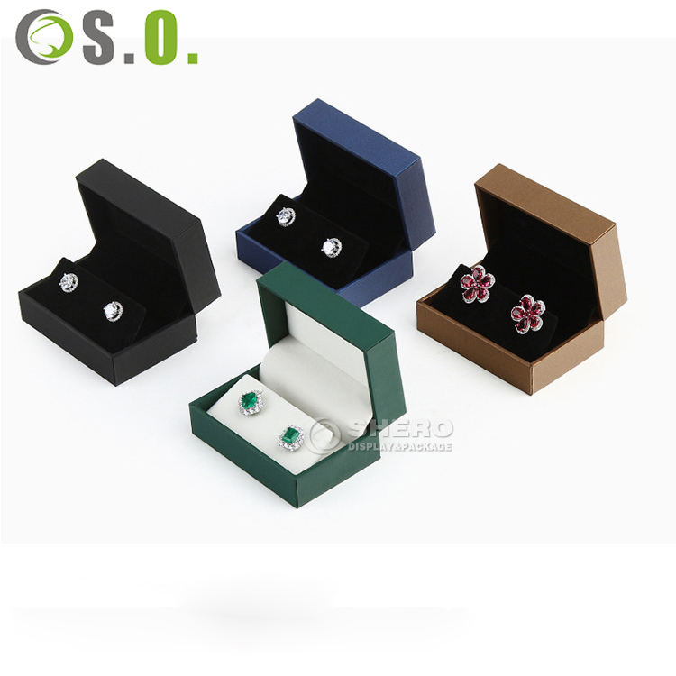 Boîte d'emballage de bijoux de luxe en cuir PU vert pour pendentif et bague de mariage, avec logo personnalisé par marquage à chaud