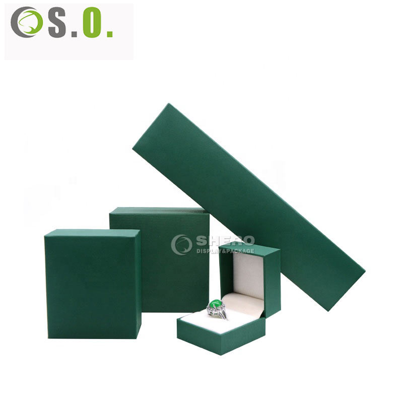 Boîte d'emballage de bijoux de luxe en cuir PU vert pour pendentif et bague de mariage, avec logo personnalisé par marquage à chaud