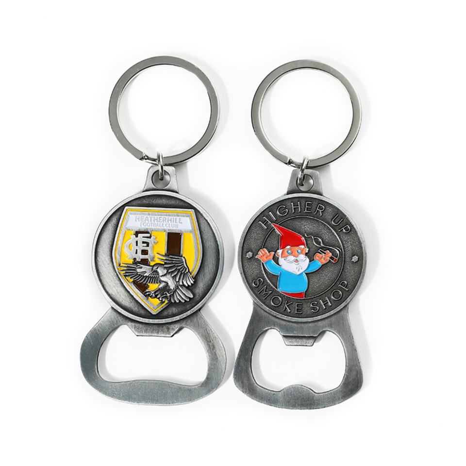 Porte-clés décapsuleur personnalisé sur mesure en alliage de zinc émaillé 2D/3D – Cadeaux promotionnels