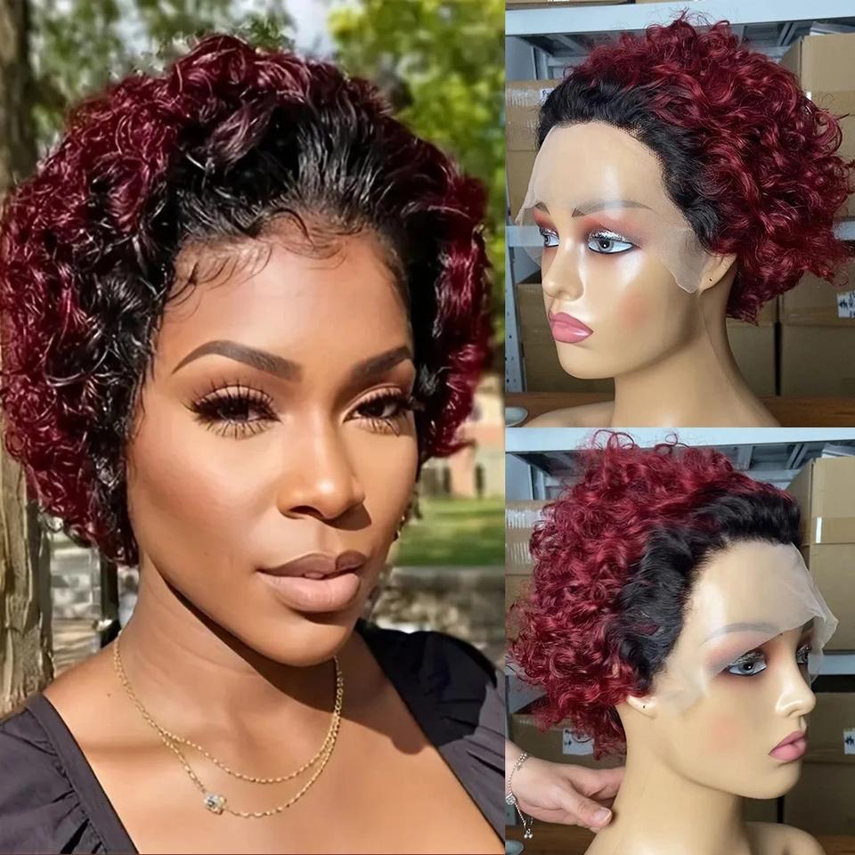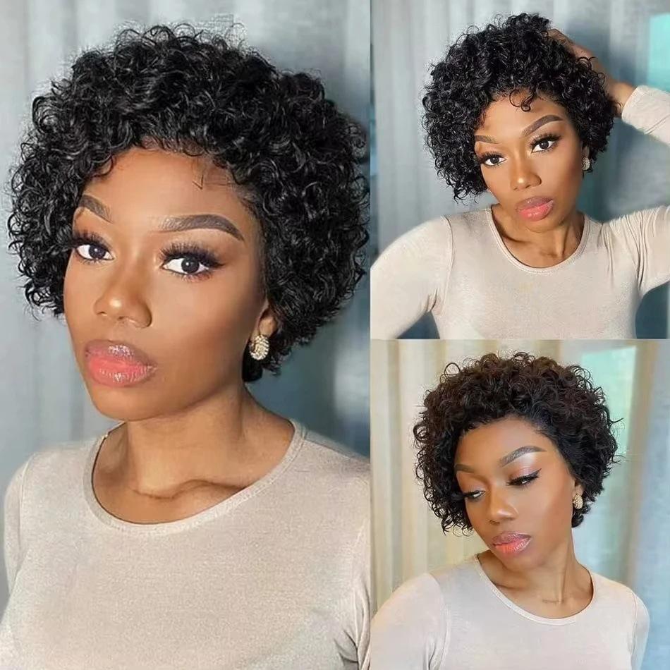 Usine Pixie Curly Perruques de Cheveux Humains 13X1 Perruques Transparentes Courtes Bouclées Avant Dentelle 100% Perruques Humaines Couvre-chef pour Femmes Afro Noires