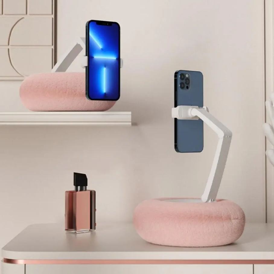 Support de téléphone et de tablette en peluche d'usine, support de bureau réglable en longueur et en angle, support de tablette paresseux pour diffusion en direct, vidéo chat