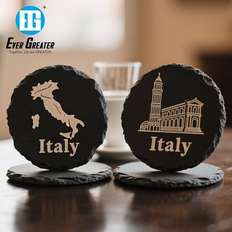 Napperons de qualité supérieure d'usine et ensembles de sous-verres personnalisés sous-verres en pierre d'ardoise noire gravée pour restaurants hôtels repas