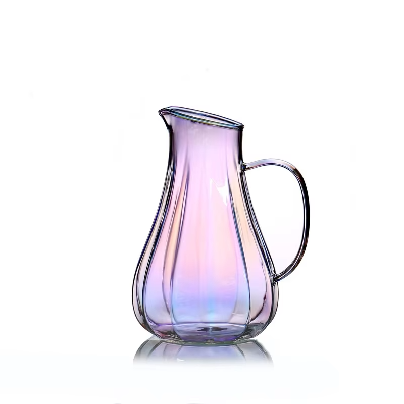 Prix d'usine, pichet à eau en verre borosilicate soufflé à la main de 1,2 L pour la maison, pichet en verre de 1,3 L