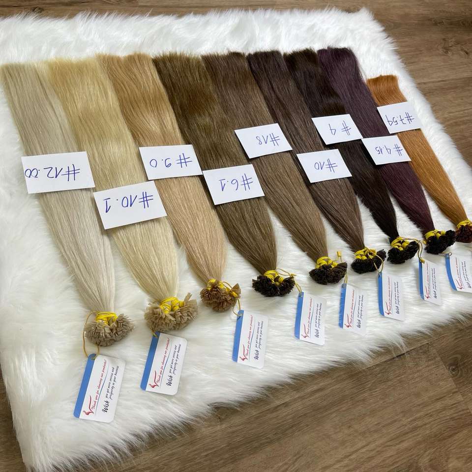 Factory Price 100% Human Hair Extensions Healthy Cuticle Aligned Hair Flat Tip Colored Hair in Stock Ready to Ship Genius Weft