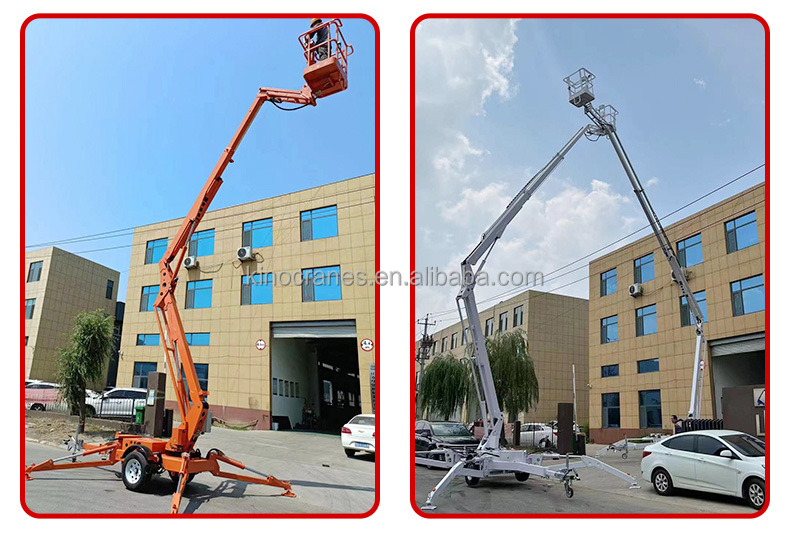Prix usine 16 mètres électrique diesel puissance hydraulique remorquable flèche table élévatrice remorque monté matériel en acier utilisé vente