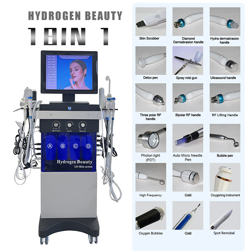 Prix Usine – Appareil Facial Hydrodermabrasion 18-en-1 avec Jet d'Oxygène et Aspiration pour Nettoyage en Profondeur des Points Noirs et Soin de la Peau à l'Oxygène