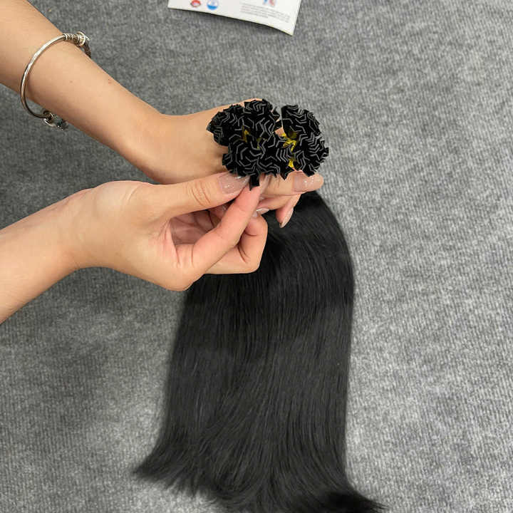 Prix d'usine # Extensions de cheveux naturels lisses 1B à pointe en K, 18-24 pouces, double épaisseur, lots de cheveux bruts, offre en gros