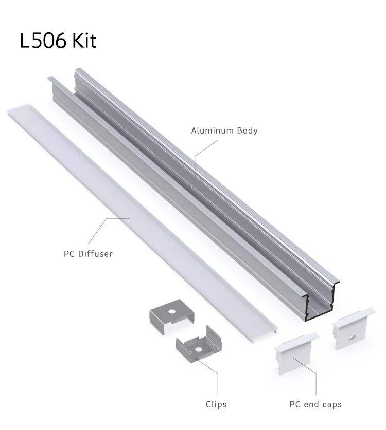 Profil en aluminium + couverture PC + capuchons d'extrémité + clips