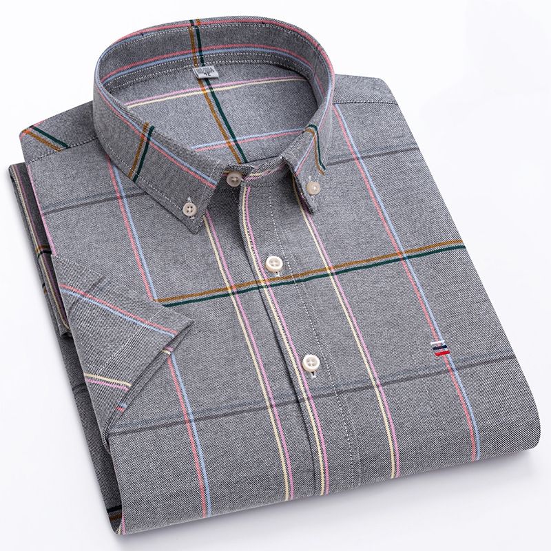 Factory Price 2025 Cotton Oxford Thin Summer New Short Sleeve Shirt Men's Casual Slim Half With Solid Color Fashion Wear