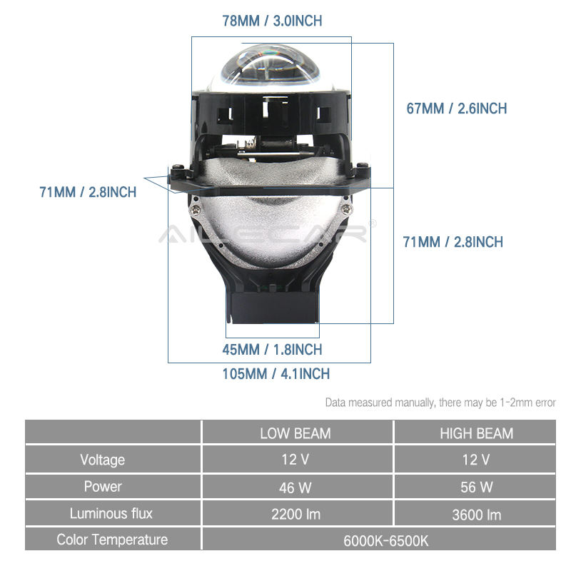 Lumenieux:2200LM dans la basse poutre, 36001LM dans la haute poutre